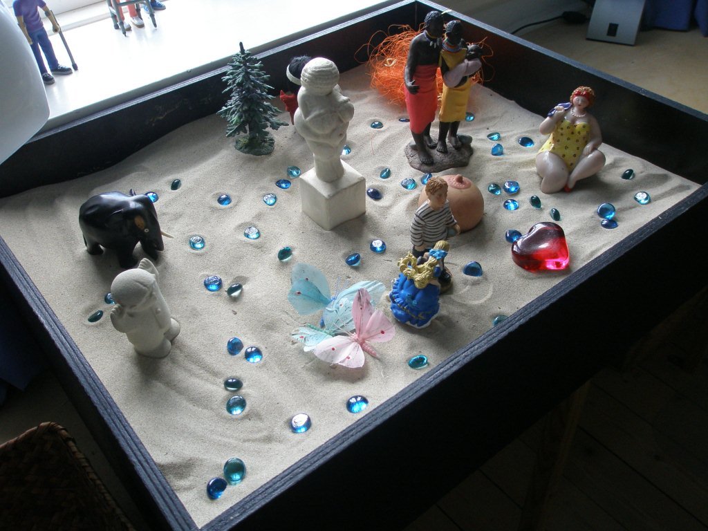 Sandplay er en god måde arbejde med de blokeringer, som kan give en problematisk og hård hverdag. Det kan være problemer med aggressivitet, humørsvingninger, jalousi eller lignende.